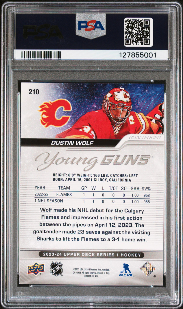 2023 Upper Deck Dustin Wolf #210 Young Guns PSA 10