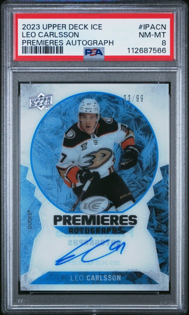 2023 Upper Deck Ice Ice Premieres Autographs Leo Carlsson Psa 8