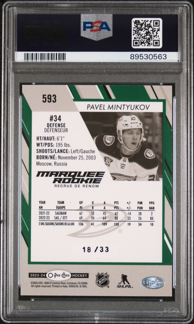 2023 Upper Deck O-Pee-Chee Pavel Mintyukov Green Rainbow