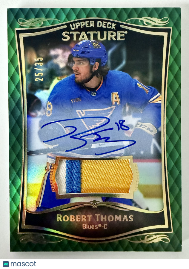 You are purchasing a 2023 Upper Deck Stature Robert Thomas Green Auto /35 Patch. You will receive the exact item in the photographs. Thank you for looking.