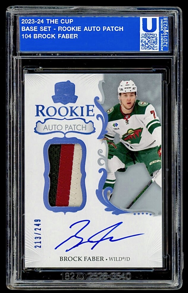 2023 Upper Deck The CUP - Brock Faber #104 TRUE RPA Rookie Patch Autograph SSP On Card Auto. Factory Sealed 3 Color /249