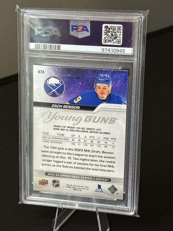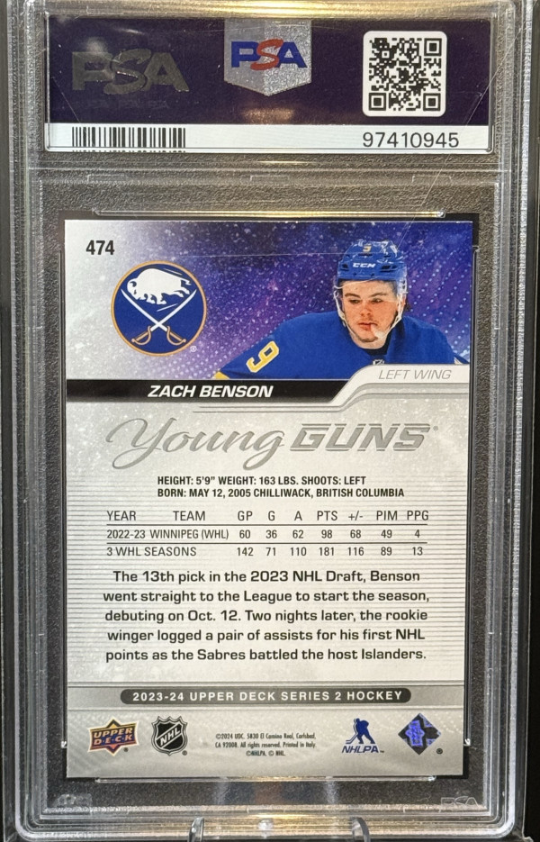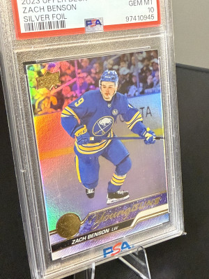 This is a PSA 10 Silver Foil Zach Benson Young Guns. The card is in absolute prestine true 10 condition.