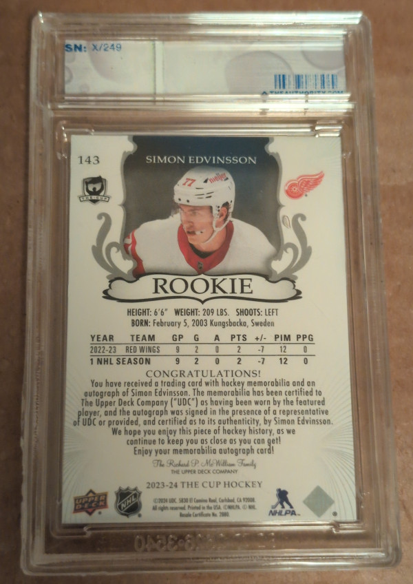 2023/24 The Cup Simon Edvinsson Rookie Patch Auto 185/249