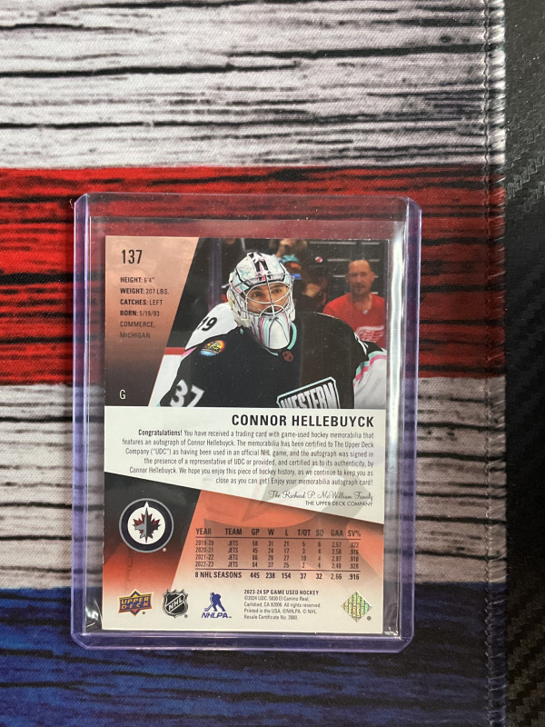 You are purchasing a 2024 2020-21 Upper Deck SP Game Used Connor Hellebuyck #137 Jersey Patch 14/35. You will receive the exact item in the photographs. Thank you for looking.