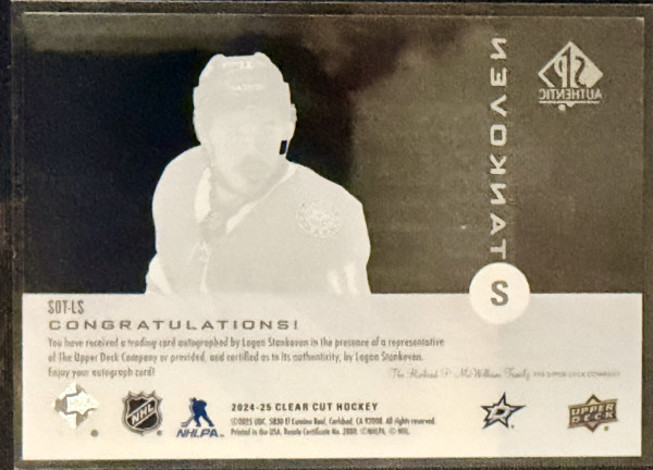 2024-25 Clear Cut Hockey Sign of the Times Auto Logan Stankoven