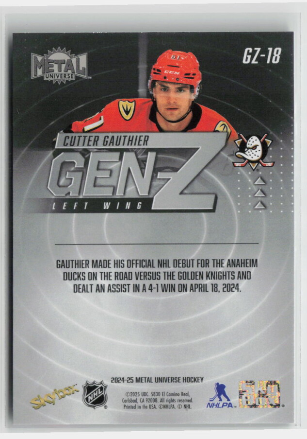 2024-25 Metal Universe Hockey Gen-Z Cutter Gauthier #GZ-18 Rookie