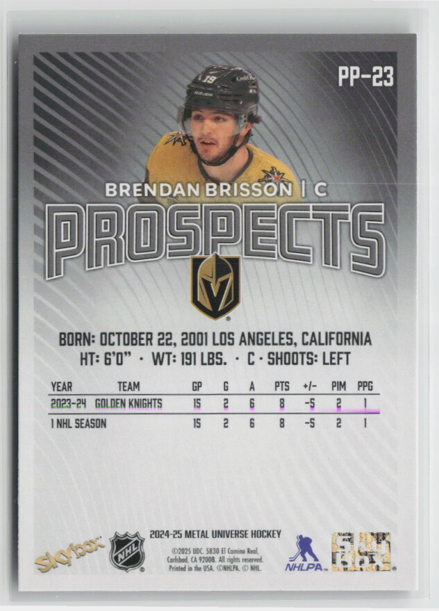 2024-25 Metal Universe Hockey Prospects Brendan Brisson #PP-23