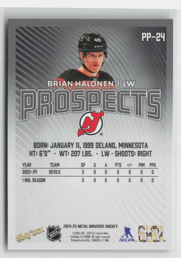 You are purchasing a 2024-25 Metal Universe Hockey Prospects Brian Halonen #PP-24. You will receive the exact item in the photographs. Thank you for looking.