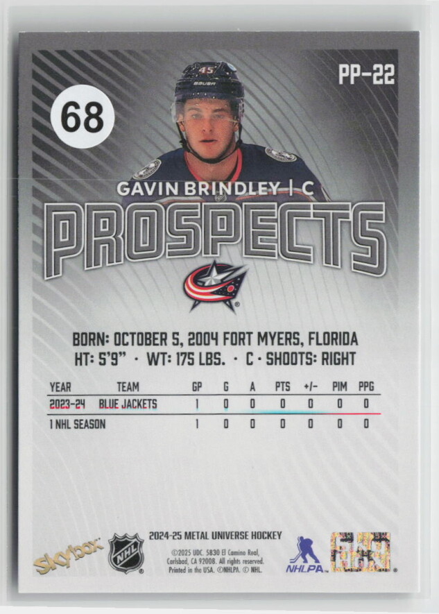 2024-25 Metal Universe Hockey Prospects Gavin Brindley #PP-22