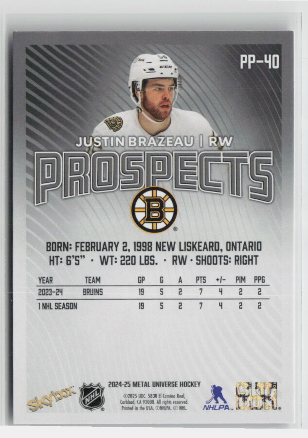 2024-25 Metal Universe Hockey Prospects Justin Brazeau #PP-40