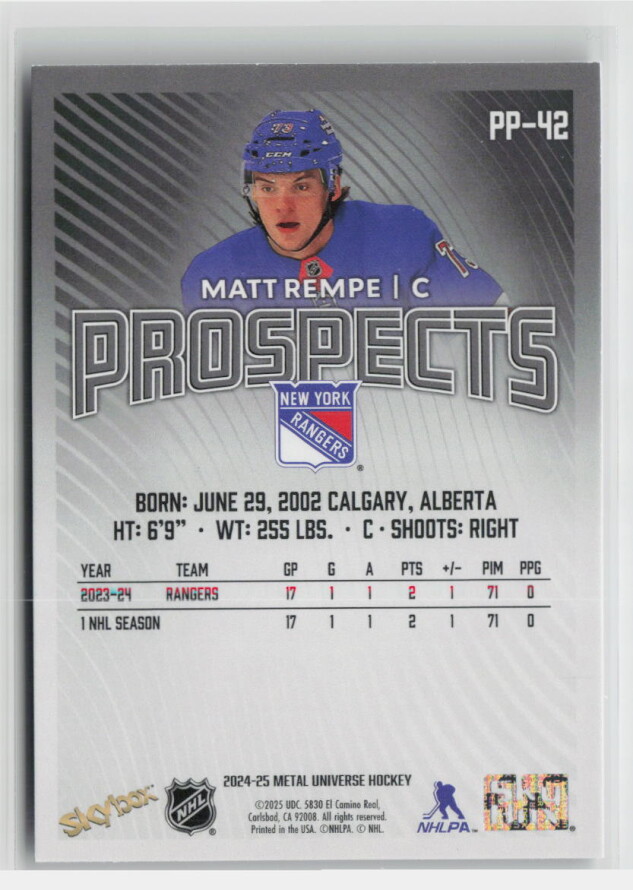 2024-25 Metal Universe Hockey Prospects Matt Rempe #PP-42