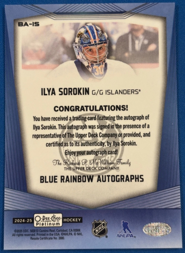 2024-25 OPC Platinum Autographs #BA-IS ILYA SOROKIN AUTO