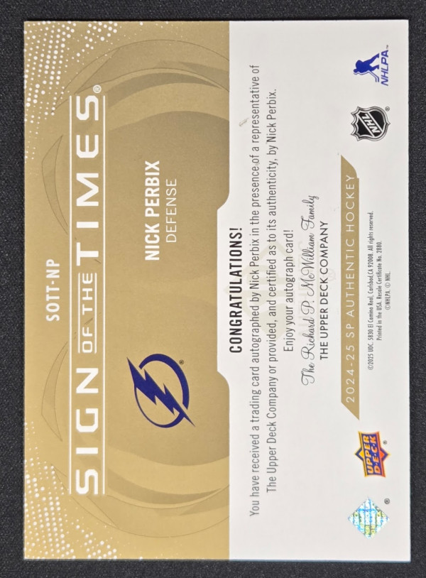 2024-25 SP Authentic Sign of the Times Black /99 - Nick Perbix "Bixx"