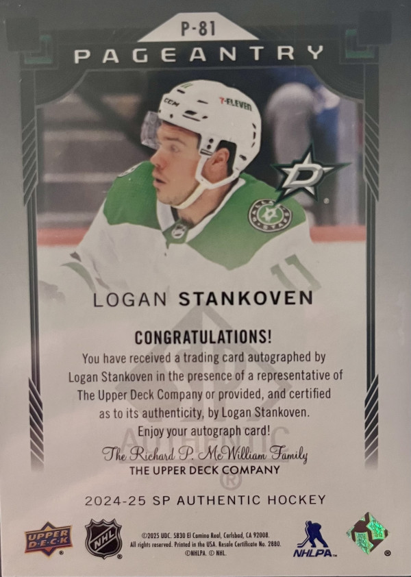 2024-25 SPA pageantry autograph Logan stankoven