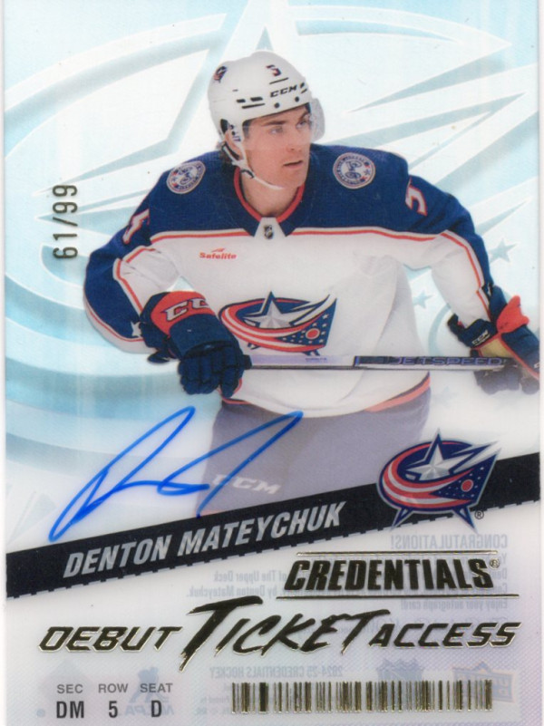 2024-25 UD Credentials Debut Ticket Access Acetate AUTO Denton Mateychuk /99