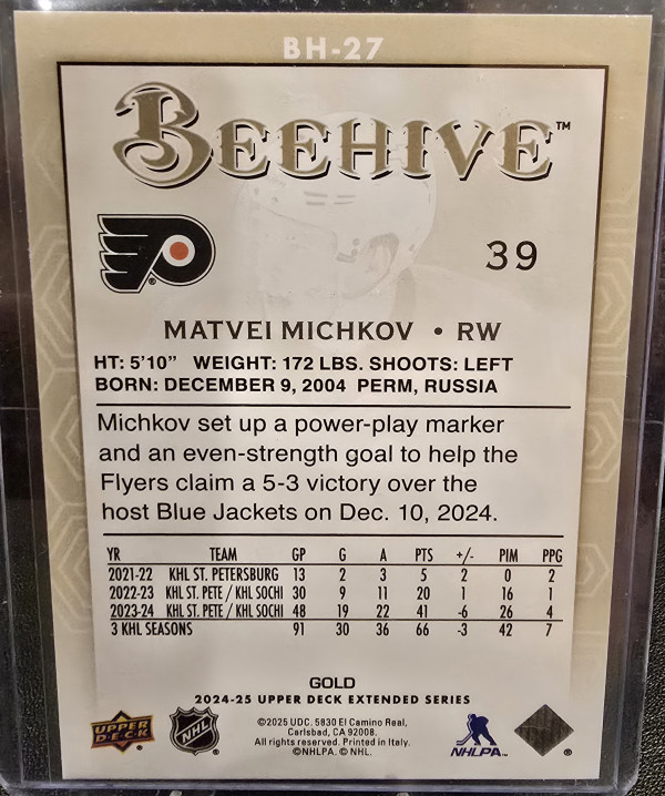 2024-25 UD Extended Matvei Michkov Beehive GOLD RC