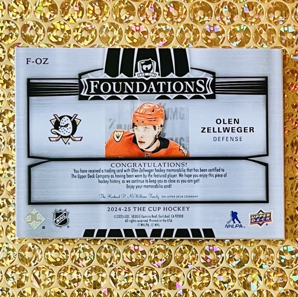 2024-25 UD The Cup #F-OZ Olen Zellweger Foundations Quad Patch RC /99