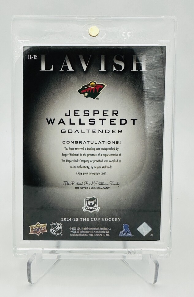 2024-25 Upper Deck The Cup Jesper Wallstedt Lavish Auto /25 Rookie Card.