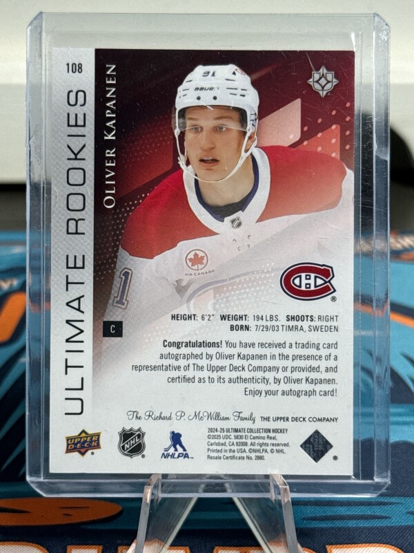 2024-25 Ultimate Oliver Kapanen Rookie Auto /299