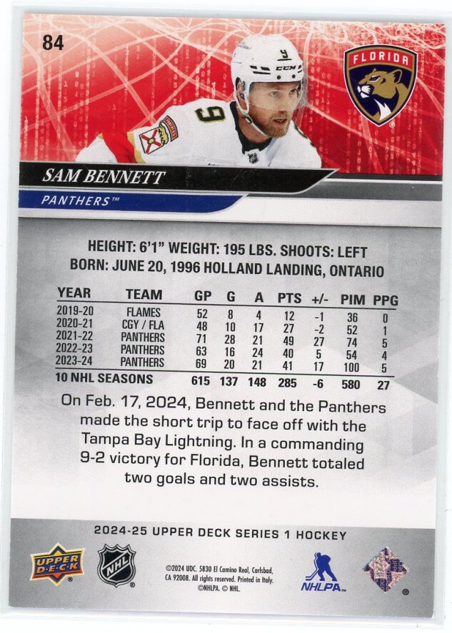 2024-25 Upper Deck #84 Sam Bennett Deluxe /250