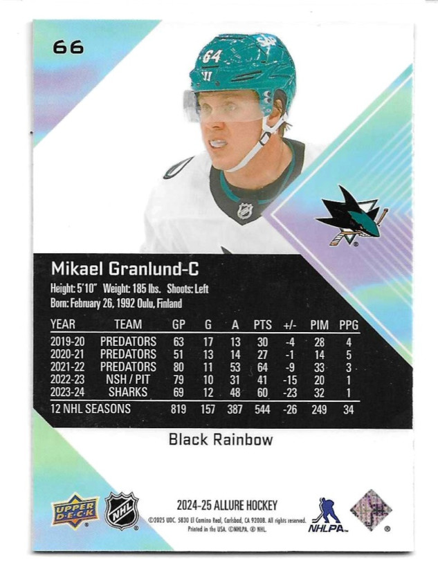 2024-25 UPPER DECK ALLURE BLACK RAINBOW #66 MIKAEL GRANLUND
