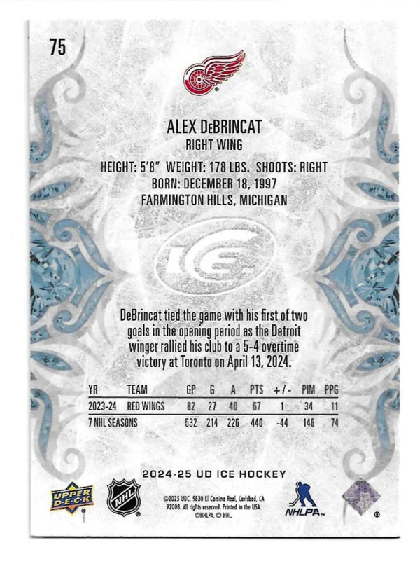 2024-25 UPPER DECK ICE #75 ALEX DEBRINCAT