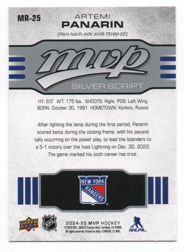 2024-25 Upper Deck MVP 10th Anniversary #MR-25 Artemi Panarin