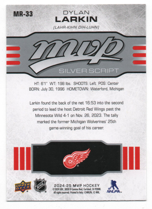 2024-25 Upper Deck MVP 10th Anniversary #MR-33 Dylan Larkin