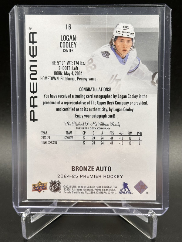 2024-25 Upper Deck Premier Logan Cooley Bronze Auto