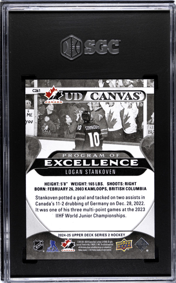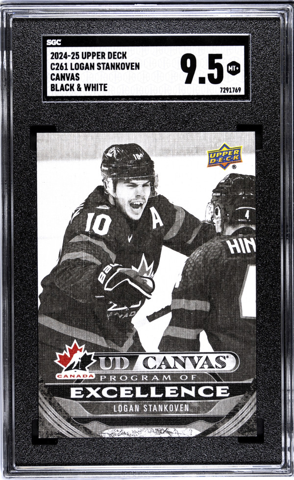 2024-25 Upper Deck Series 2 Canvas Program of Excellence Logan Stankoven Black and White