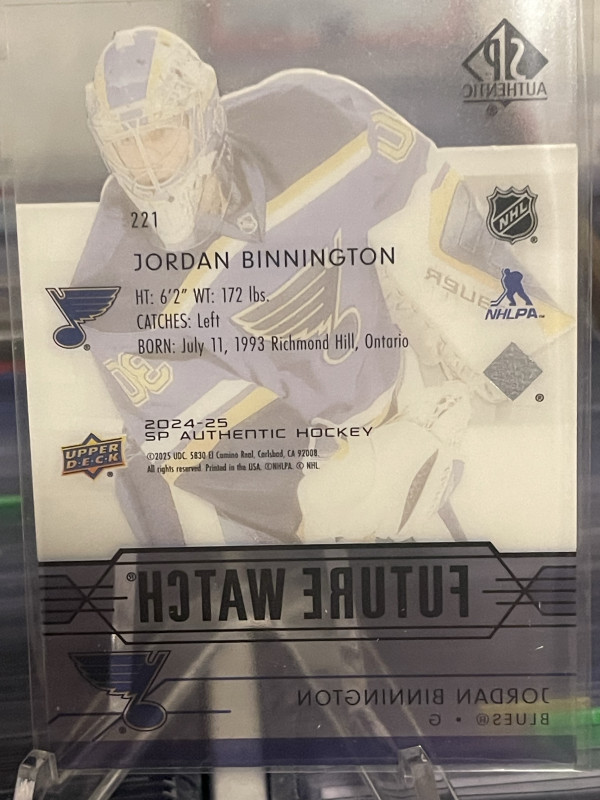 2024-25 Upper Deck Sp Authentic Jordan Binnington Retro Future Watch Acetate