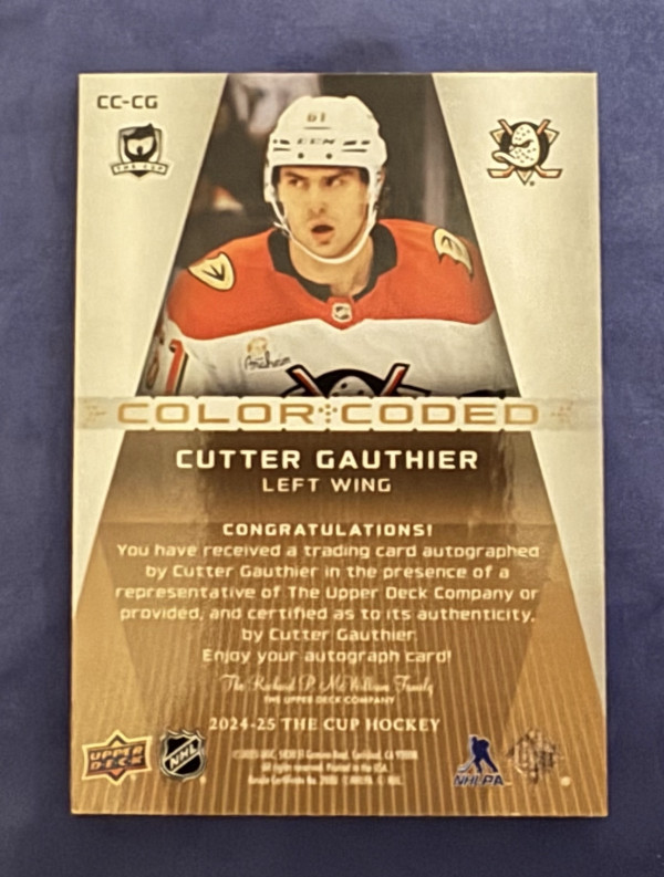 2024-25 Upper Deck The Cup Color Coded Auto Cutter Gauthier 06/35