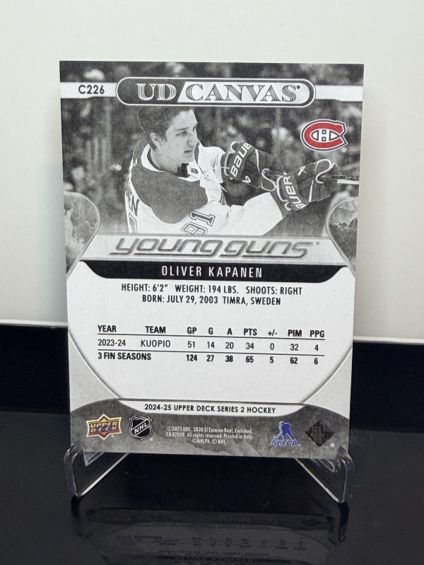 2024-25 Young Guns Canvas B&W- Oliver Kapanen