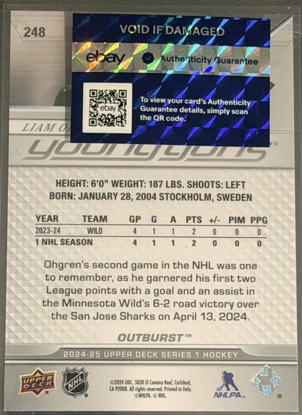 2024 Liam Öhgren Upper Deck Series 1 Young Guns Red Outburst /25