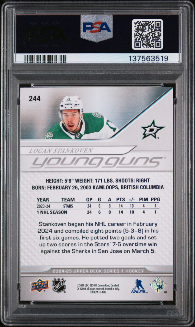 2024 Upper Deck Logan Stankoven Young Guns PSA 9