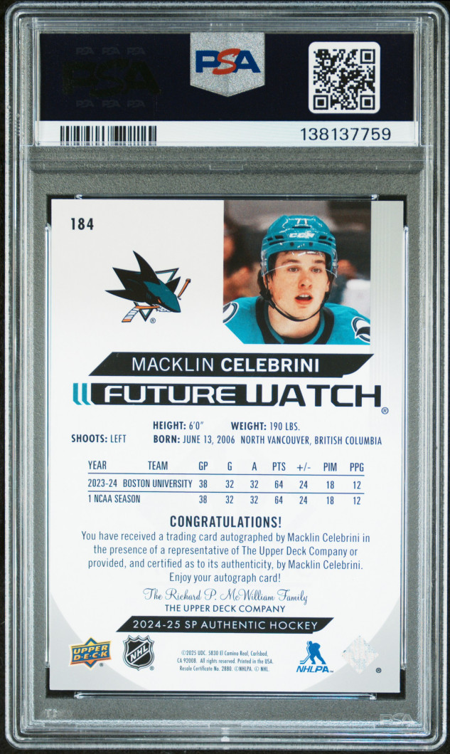 2024 Upper Deck Sp Authentic Macklin Celebrini Autograph
