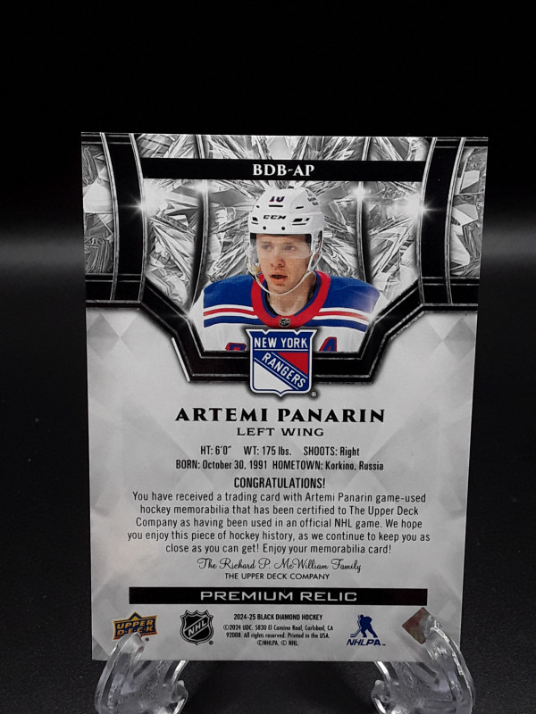 2024/25 Upper Deck Black Diamond Artemi Panarin Premium Relic #BDB-AP /50