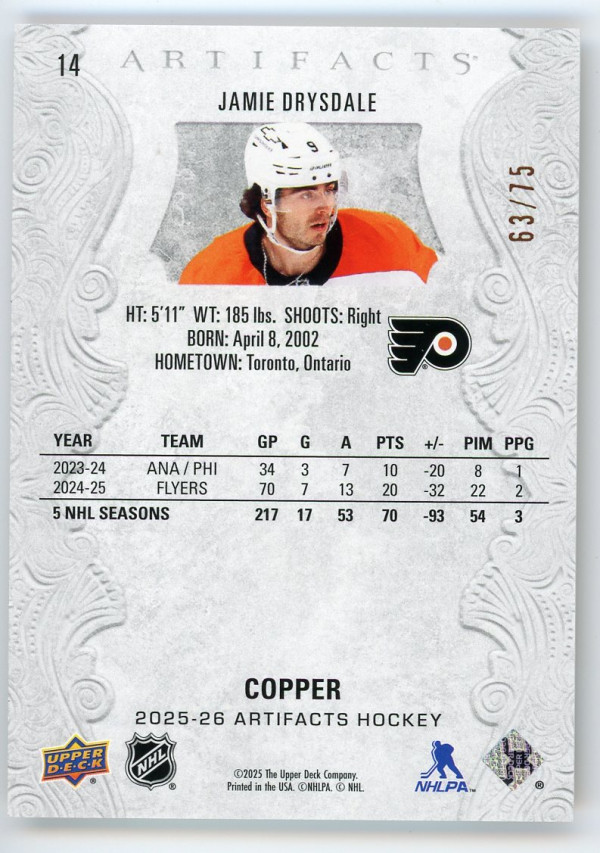 2025-26 Artifacts #14 Jamie Drysdale Copper 63/75