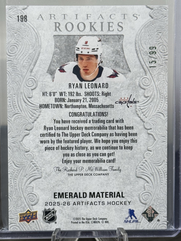 2025-26 Artifacts Ryan Leonard Emerald Material /99