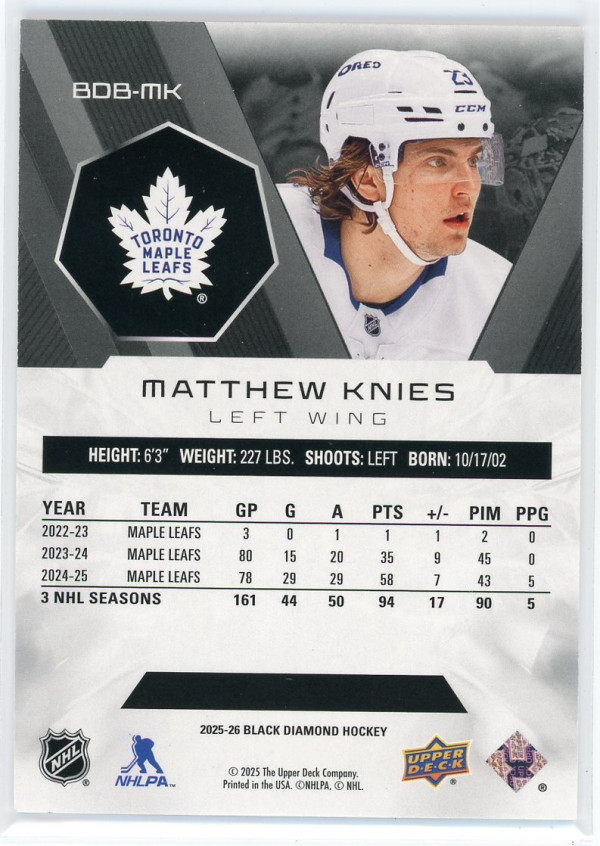 2025-26 Black Diamond Matthew Knies 270/349 #BDB-MK