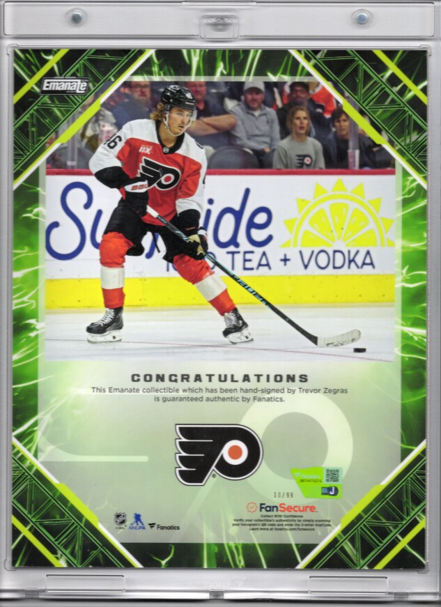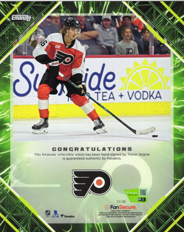 2025-26 Fanatics Emanate Under Wraps Trevor Zegras Auto 8x10 Green #10/99