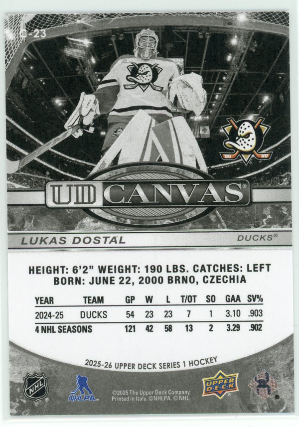 2025-26 Upper Deck #C-23 Lukas Dostal UD Canvas Black and White