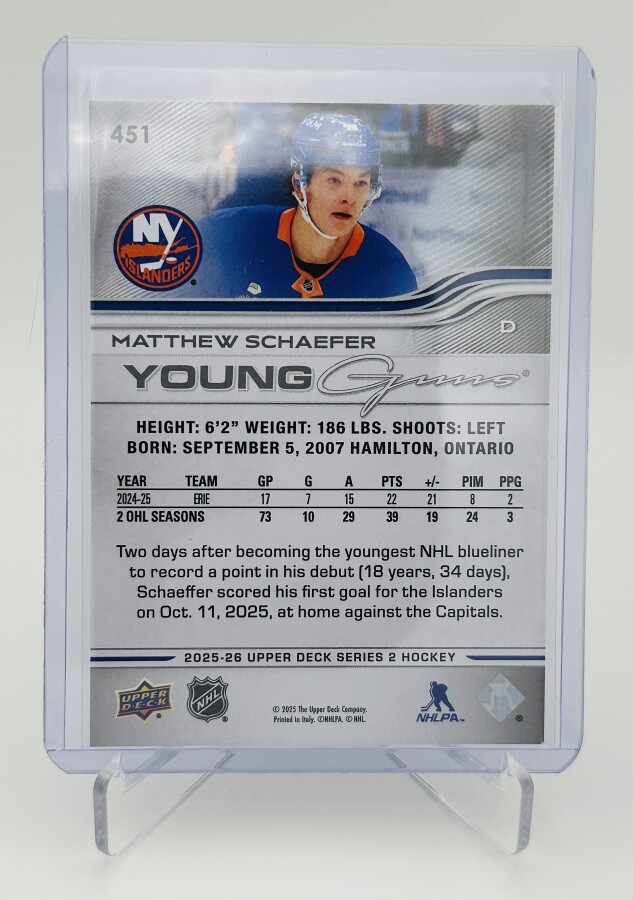 2025-26 Upper Deck Series 2 Matthew Schaefer Young Guns
