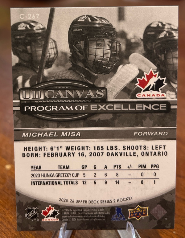 2025-26 Upper Deck Series 2 Michael Misa Black & White Program Of Excellence