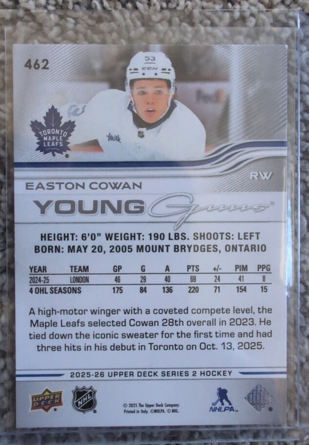 2025-26 Upper Deck Series 2 - Young Guns Easton Cowan #462 (RC)