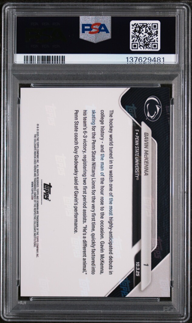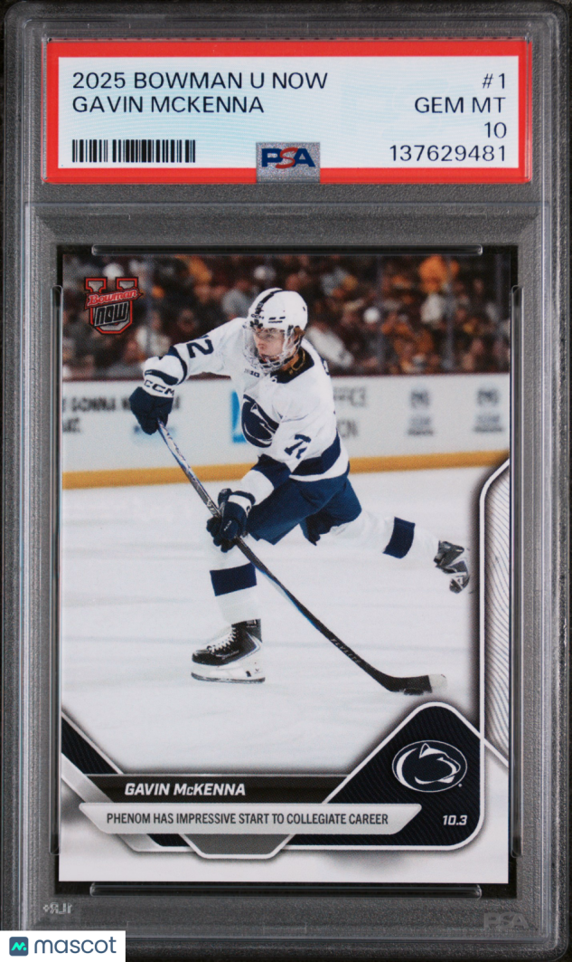 You are purchasing a 2025 Bowman U Now Gavin Mckenna #1 Rookie PSA 10. You will receive the exact item in the photographs. Thank you for looking.