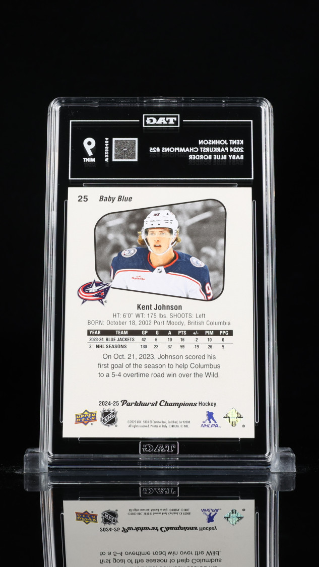 You are purchasing a Parkurst Champions Kent Johnson #25 Baby Blue Border TAG 9. You will receive the exact item in the photographs. Thank you for looking.