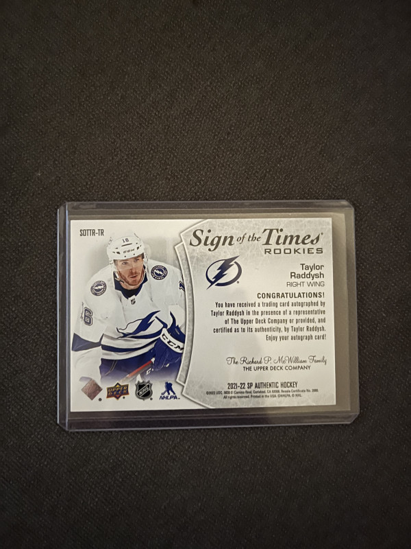 21-22 SPA Sign of the Times Rookie Taylor Raddysh inscribed /25