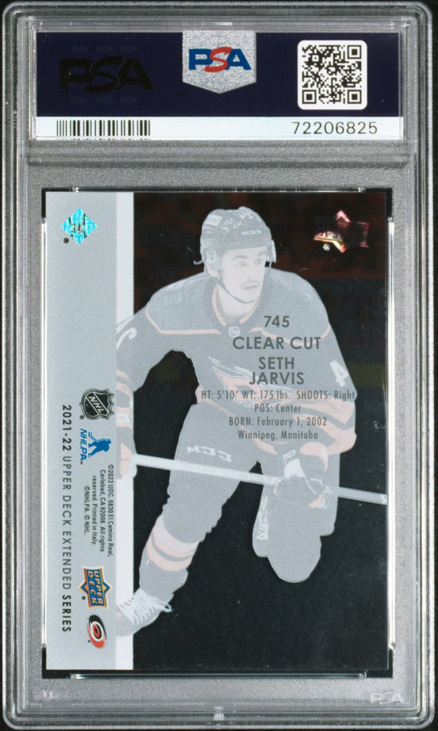 21/22 UD EXTENDED CLEAR CUT YOUNG GUNS #745 SETH JARVIS RC PSA 9