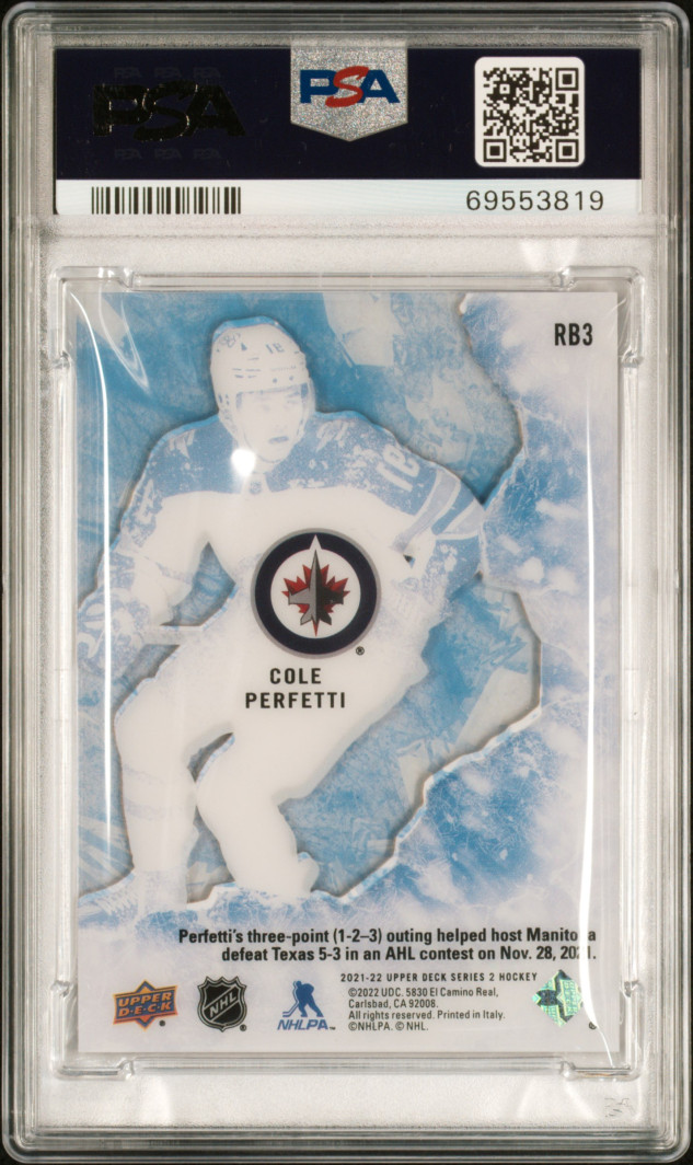 21/22 UD SERIES 2 ROOKIE BREAKOUTS #RB3 COLE PERFETTI RC (070/100) PSA 10 - POP 1